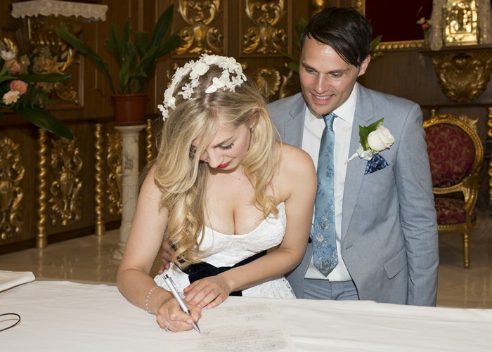 On arrival, our hosts in Andalucia were amazing: when they heard about our plan, they went out and arranged for us to be blessed in their local Catholic chapel in the village there! James had been right, everything really was slotting into place. The daughter of our host arrived at our villa the morning of our wedding and offered to do my hair, which I happily accepted. For my makeup, I decidedly to go with my daily face. I know weddings are extra special, but I wear makeup every day and I wanted my wedding day to be all about the ordinary me, presented to my husband. It sounds a bit corny writing that down, but it made sense at the time. I'm known for wearing 'Ruby Woo' by MAC day in and out so of course, this was my wedding lipstick as well. For my foundation I wore Boots Beautifully Matt and I have to say, it really stood its ground in the hot, sunshine bursting weather. We had a hot wedding.The whole feeling of happiness was completely overwhelming and the fact that these perfect strangers were so welcoming really made the experience feel predestined. As well as opening up their villa to us, they also loaned us the use of their car whilst we were there and delivered fresh trays of fruit as a honeymoon gift. Three days after arriving, our wedding was blessed in a broken english / spanish ceremony.