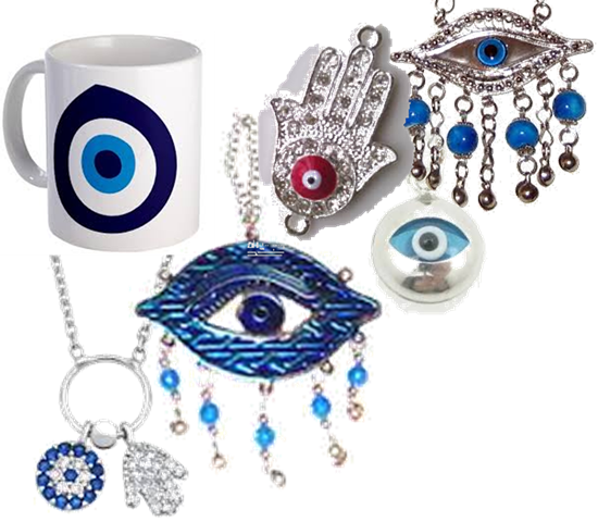 It's believed that blue - (the colour of fidelity, truth and heaven) has the power and strength to thwart and throw off the hexes and curses of the Evil Eye. Most commonly these safeguards against curses take the form of jewellery and other wearable objects.