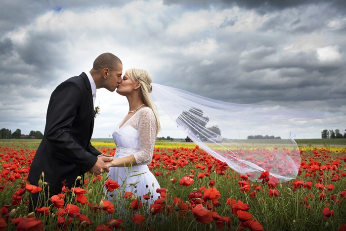 No Guests? No church steps? No problem. Make your own 'confetti' shot anywhere, anyhow. Like a poppy field for instance.